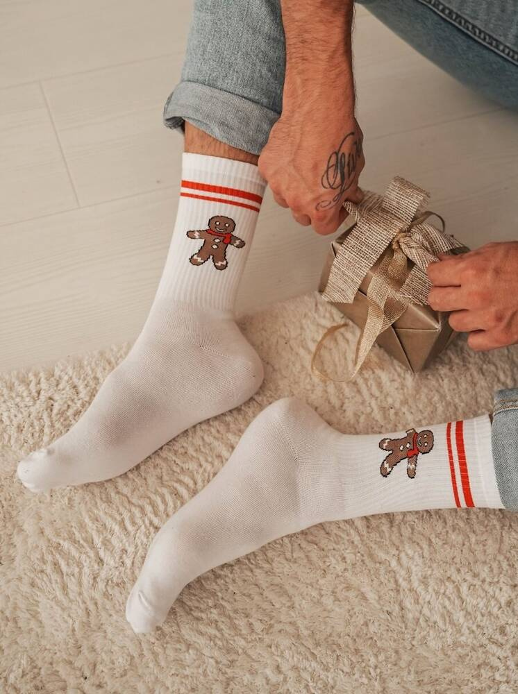 1290-027 Großer Keks mit Streifen Milena Herren-Weihnachtssocken – weiß
