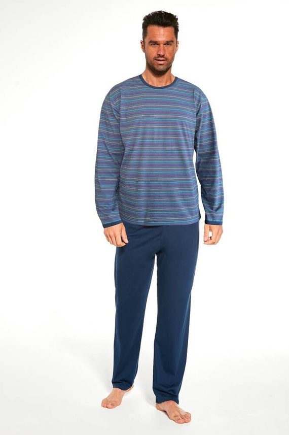 Herrenpyjama aus hochwertiger Baumwolle. Gestreiftes Langarm-Sweatshirt mit Rundhalsausschnitt. Das Set beinhaltet lange, gerade Hosen. Verpackt im Karton.