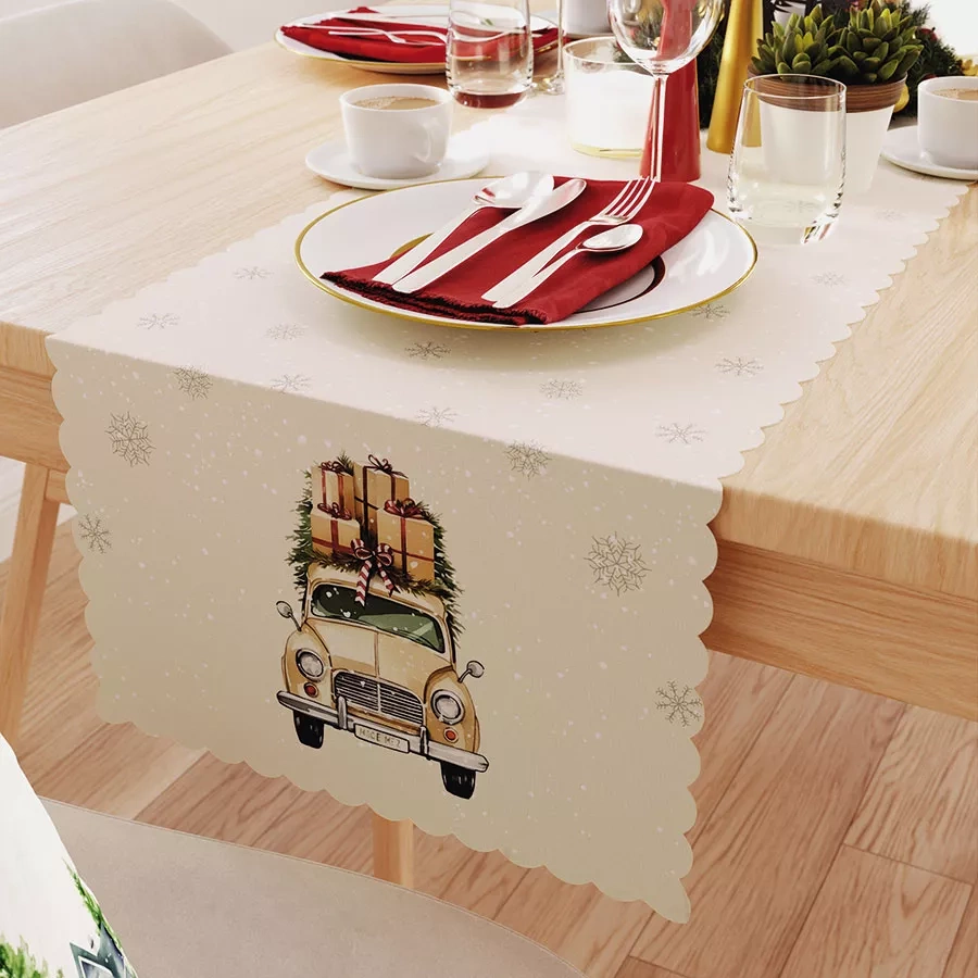 Weihnachtstischdecke Es ist eine ästhetisch gestaltete und anmutige Dekoration für jeden Tisch. Es zeichnet sich durch aktuelles modisches Design, hohe Qualität des Rohmaterials und präzise Verarbeitung aus. Es wird sicherlich jedem Interieur viel Charme verleihen und die gemeinsamen Momente bei der Weihnachtsfeier noch angenehmer machen. Es eignet sich perfekt als eigenständige Dekoration, sieht aber auch als Tischdeckenauflage stilvoll aus. Die glatte, einheitliche Struktur des Produkts unterstreicht auf subtile Weise den Stil und die Eleganz der Weihnachtstafel in dieser besonders fröhlichen und familiären Zeit. Es wird eine perfekte und einzigartige Dekoration sein, die die feierliche Atmosphäre von Weihnachten unterstreicht.