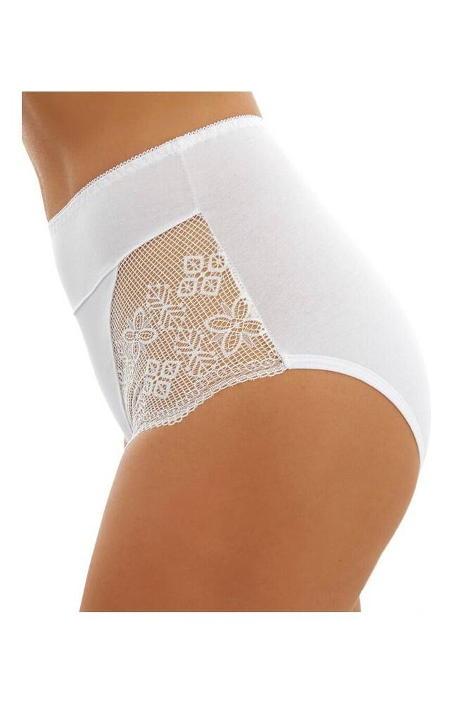 Geschlossener, hoher Damen-Slip aus glatter Baumwolle mit auffälliger Spitze