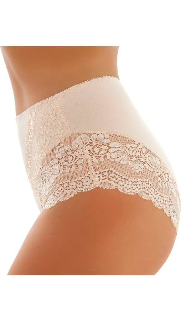 Geschlossener, hoher Damen-Slip aus glatter Baumwolle mit auffälliger Spitze
