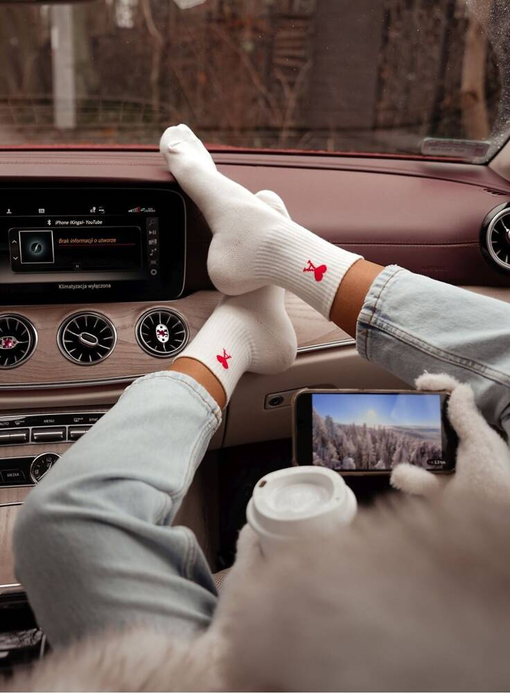 Damensocken aus hochwertiger Baumwolle, verziert mit einem Valentinstagsmotiv. Perfekt als Geschenk.