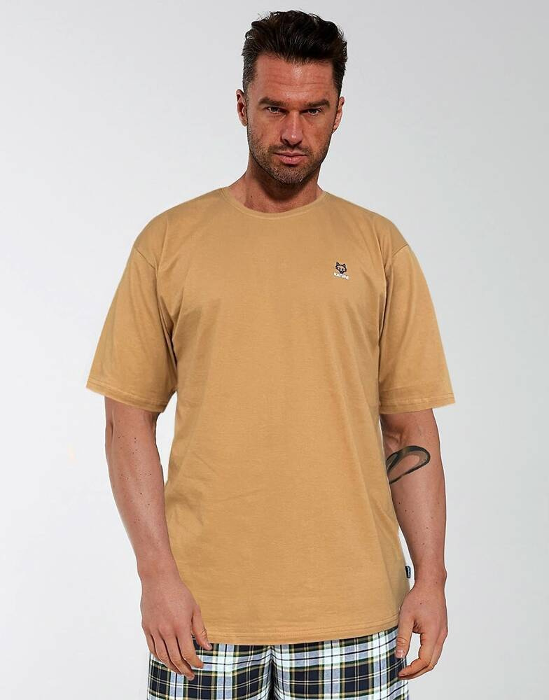 Herrenpyjama aus hochwertiger Baumwolle. T-Shirt mit kurzen Ärmeln und halbkreisförmigem Ausschnitt.