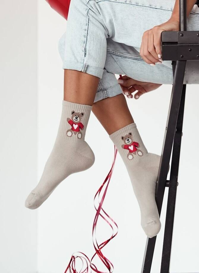 0200-144 Valentinstag Teddybär Milena Damensocken – Beige