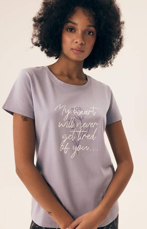 Kurzarm-Pyjama für Damen. Locker sitzendes T-Shirt mit Aufdruck.