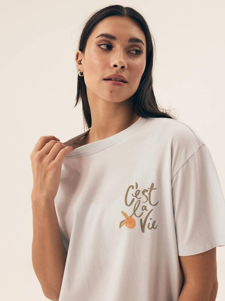 Kurzarm-Pyjama für Damen. Locker sitzendes T-Shirt mit Aufdruck.