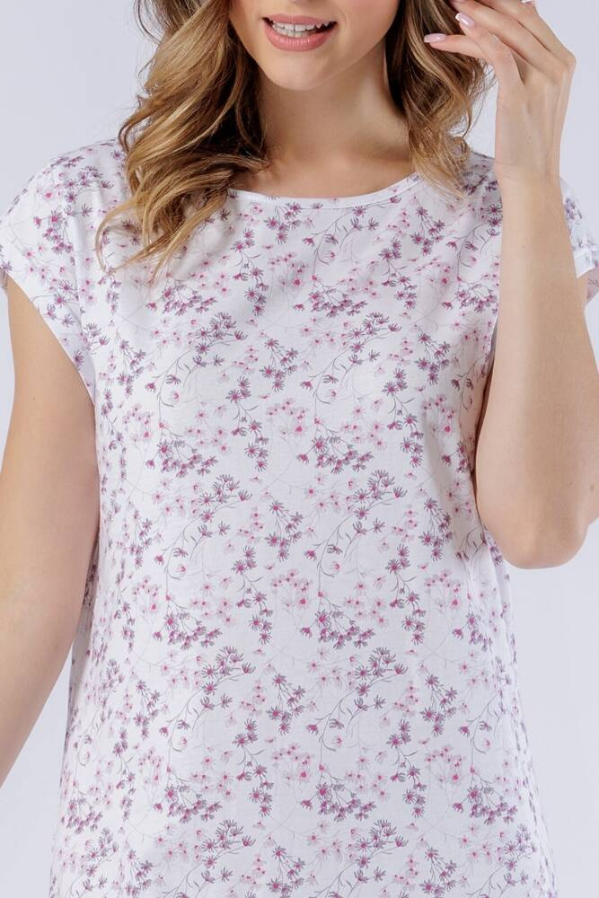 Damenshirt aus hochwertiger Baumwolle. Modell mit kurzen Ärmeln, aus hochwertiger gemusterter Baumwolle.