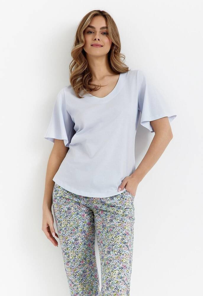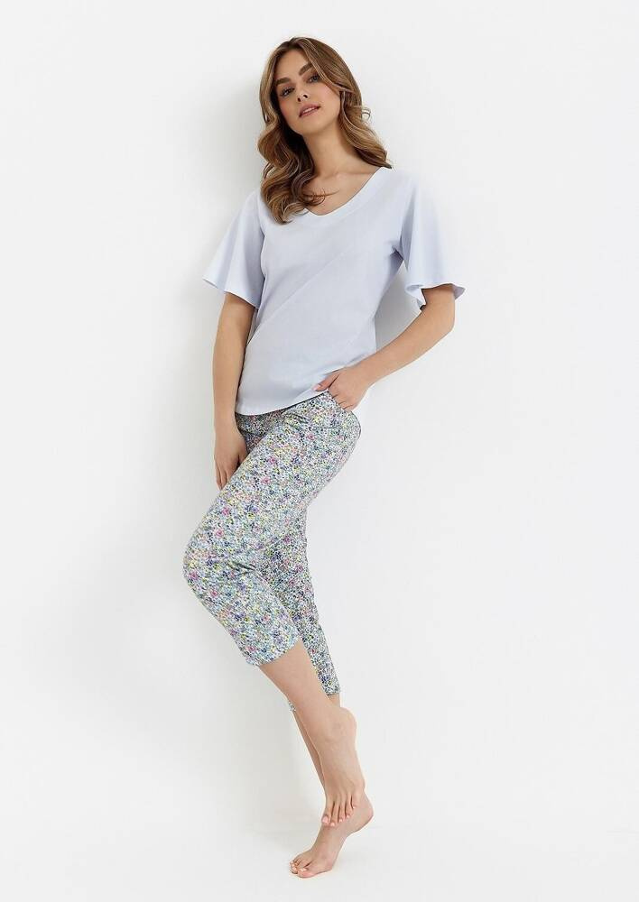 Das Set umfasst eine wadenlange Hose mit floralem Motiv