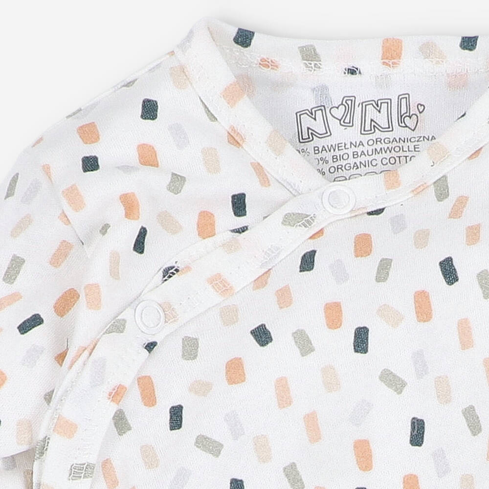 Ein in Polen hergestellter Babystrampler aus sehr angenehm anzufassender Bio-Baumwolle. Öko-Baumwollfasern sind stärker, elastischer und dehnungsbeständiger, sodass sie länger halten. Nickelfreie Druckknöpfe und zarte, weiche Paspeln sind weitere Vorteile des Kleidungsstücks. Die Marke NINI ist eine der wenigen in Polen, die über das internationale Zertifikat OEKO-TEX STANDARD 100 verfügt, das bestätigt, dass ihre Produkte den höchsten Sicherheitsstandards für Babys entsprechen. Durch den Kauf von NINI-Kleidung kümmern Sie sich um die Umwelt sowie die Sicherheit und Gesundheit Ihrer Kinder.