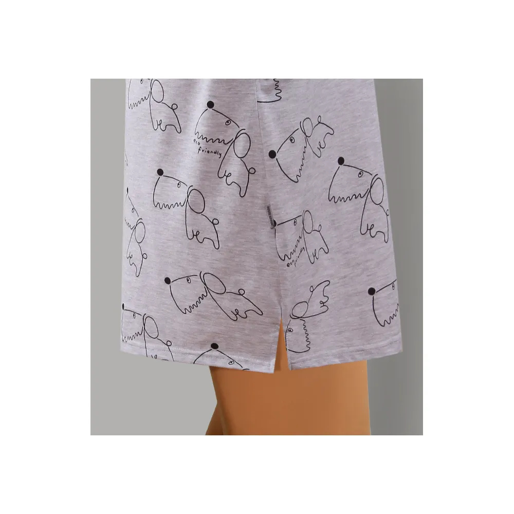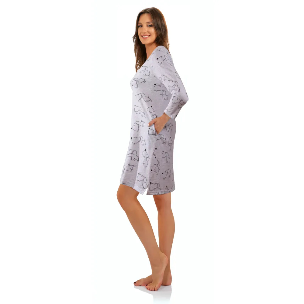 Das Hemd hat zwei Seitentaschen und Seitenschlitze. Modell mit 3/4 langen Ärmeln. Perfekt zum Schlafen für Frauen jeden Alters. Es eignet sich auch als bequemes Heimoutfit.
