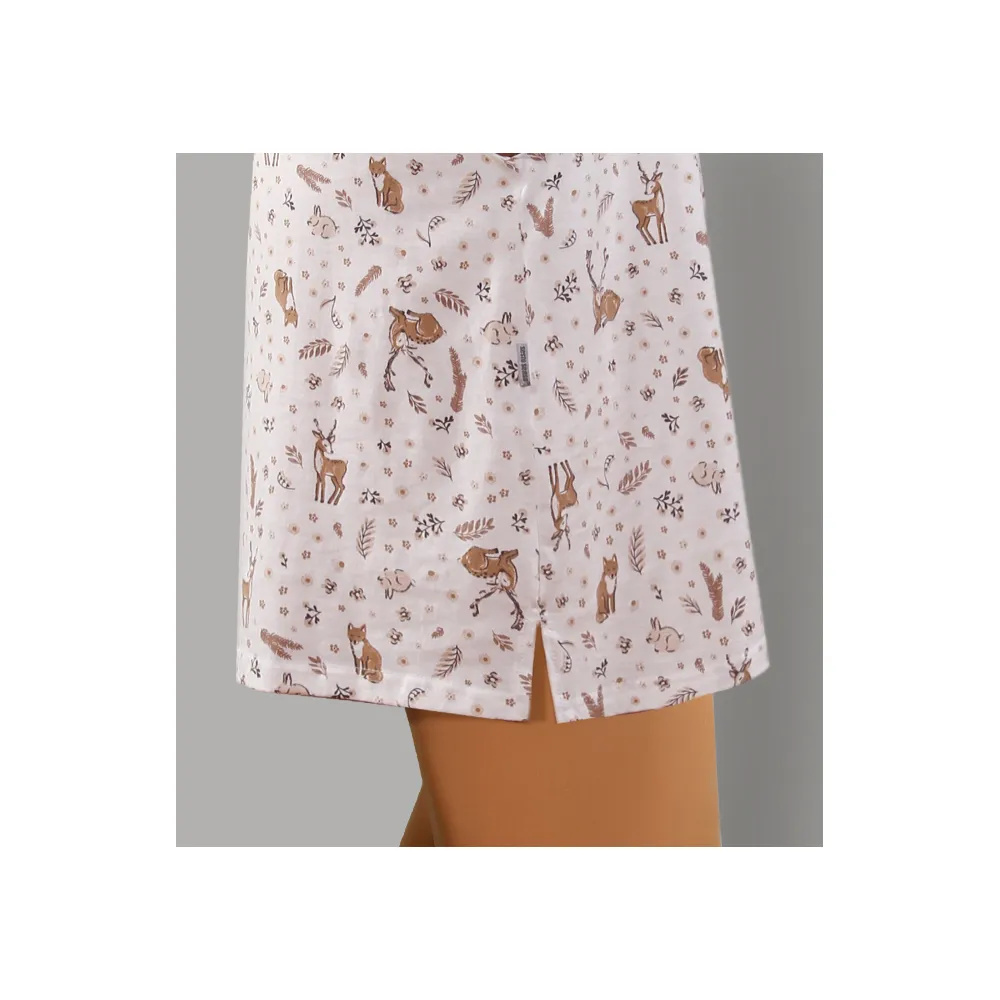 Das Hemd hat zwei Seitentaschen und Seitenschlitze. Modell mit 3/4 langen Ärmeln. Perfekt zum Schlafen für Frauen jeden Alters. Es eignet sich auch als bequemes Heimoutfit.