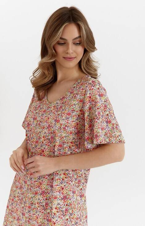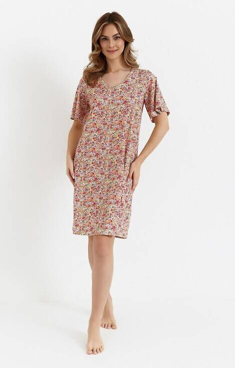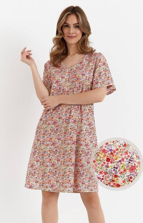 Damen-Kurzarmshirt aus hochwertiger Baumwolle mit Blumen. Äußerst angenehm zur Haut.