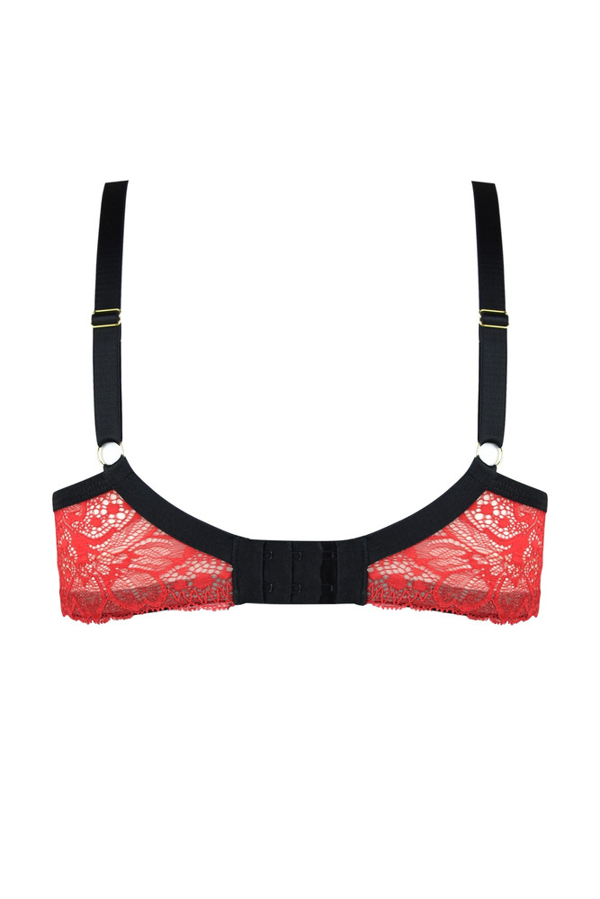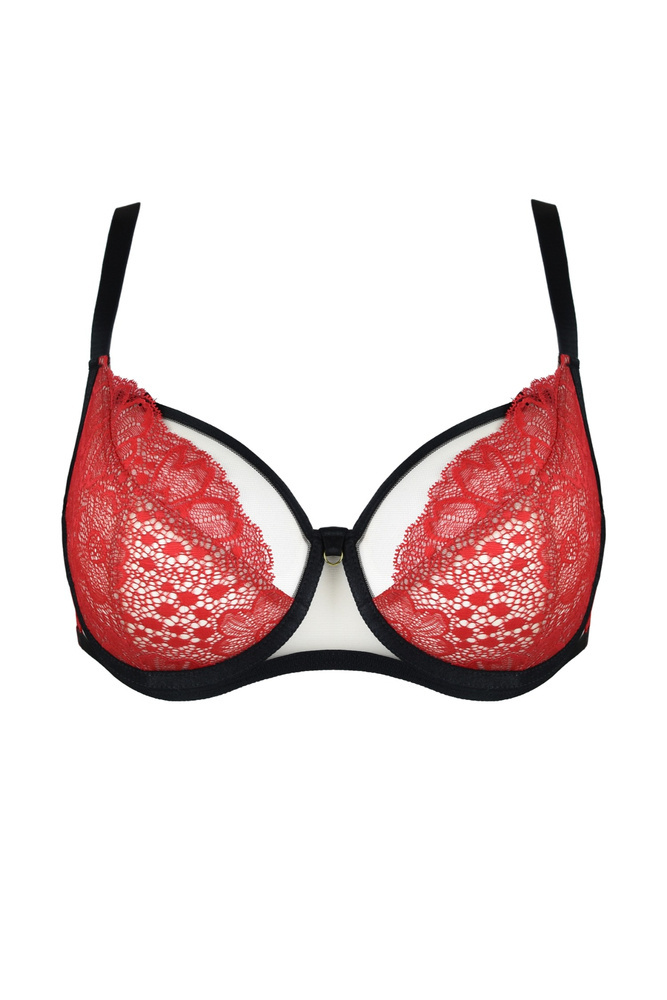 Weicher BH aus beigem Netzstoff, umrankt von zarter roter Spitze. Die Cups passen sich der Brustform an und geben ihr gleichzeitig ausreichend Halt. Zarte Spitze ziert den unteren Teil des Cups. Dank der Schnitte und hochwertigen Materialien garantiert es eine hervorragende Unterstützung der Brust und sorgt gleichzeitig für Tragekomfort den ganzen Tag. Eine ausgezeichnete Wahl für Frauen, die Wert auf eine Kombination aus Funktionalität und sinnlichem Aussehen legen.