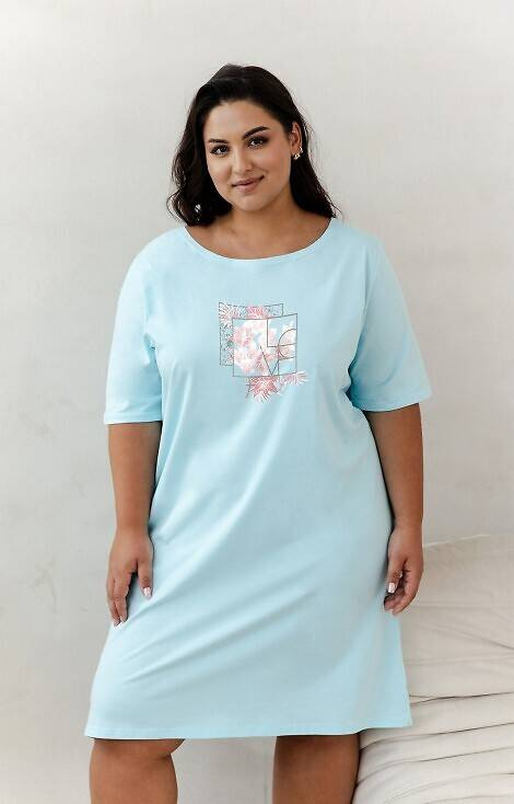 Kurzarmshirt für Damen. Das Ganze ist aus hochwertiger Baumwolle gefertigt und mit einem Spitzendruck verziert. Rundhalsausschnitt. Länge über dem Knie