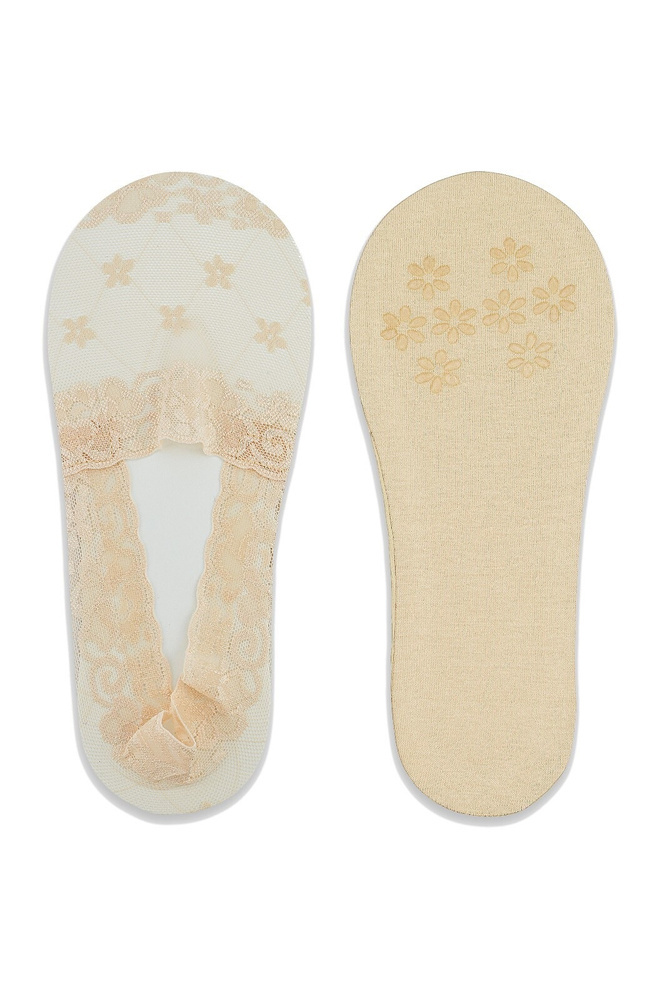 Ballerinas aus Spitze. Kordelzug mit Silikonstreifen, verhindert ein Verrutschen. Glatte Baumwollsohle mit Silikonblumen. Sie passen perfekt zum Fuß. Sie schützen vor Abschürfungen.