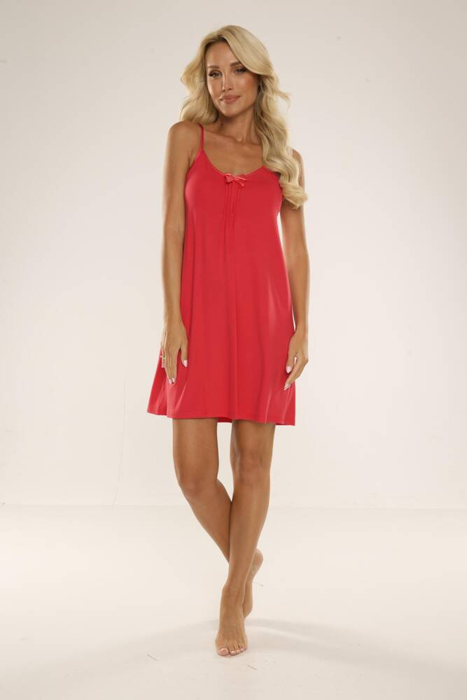 Äußerst bequemes und zugleich charmantes Hemd. Weiche Viskose verleiht ihm einen besonderen Charme. Modell mit schmalen, verstellbaren Trägern. Eine Schleife auf Brusthöhe.