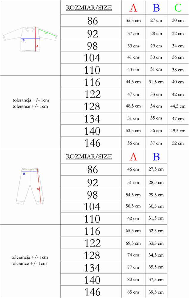 - Pyjama für ein Kind Langarmbluse, Lange Hose Polnischer Hersteller