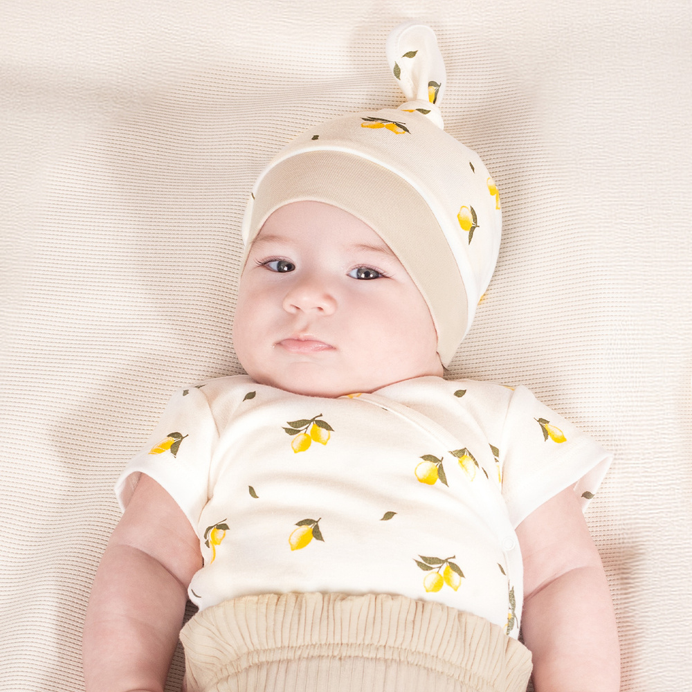 Stelle eine FrageEin Kopftuch für Mädchen, perfekt für heiße Tage. Aus bedruckter Baumwolle. Das Material verfügt über das Öko-Tex Standard 100 Trustworthy Textiles Zertifikat. Das Produkt ist mit einer druckfreien Manschette und einem beigen Besatz verziert.
