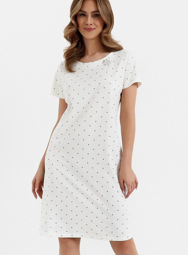 Damen-Kurzarmshirt aus hochwertiger Baumwolle mit Punkten. Äußerst angenehm zur Haut.