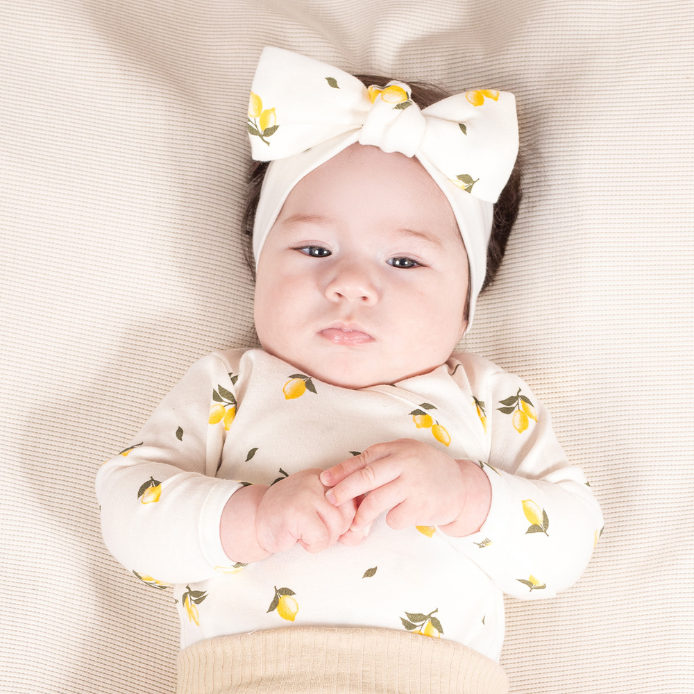 Langärmeliger Umschlag-Body für Mädchen, aus 100 % Baumwolle. Das Produkt wird vorne und im Schritt mit nickelfreien Druckknöpfen befestigt. Dieses Modell wird für Neugeborene empfohlen, da der Umschlagverschluss das Anziehen des Babys erleichtert. Das Material verfügt über das Öko-Tex Standard 100 Trustworthy Textiles Zertifikat.