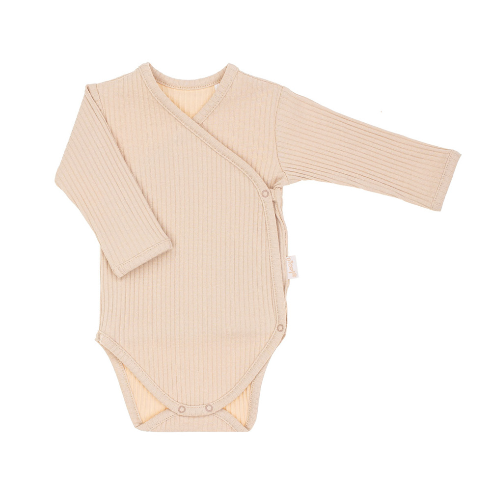 Langärmeliger Umschlag-Body für Mädchen, aus 100 % Baumwolle. Das Produkt wird vorne und im Schritt mit nickelfreien Druckknöpfen befestigt. Dieses Modell wird für Neugeborene empfohlen, da der Umschlagverschluss das Anziehen des Babys erleichtert. Das Material verfügt über das Öko-Tex Standard 100 Trustworthy Textiles Zertifikat.