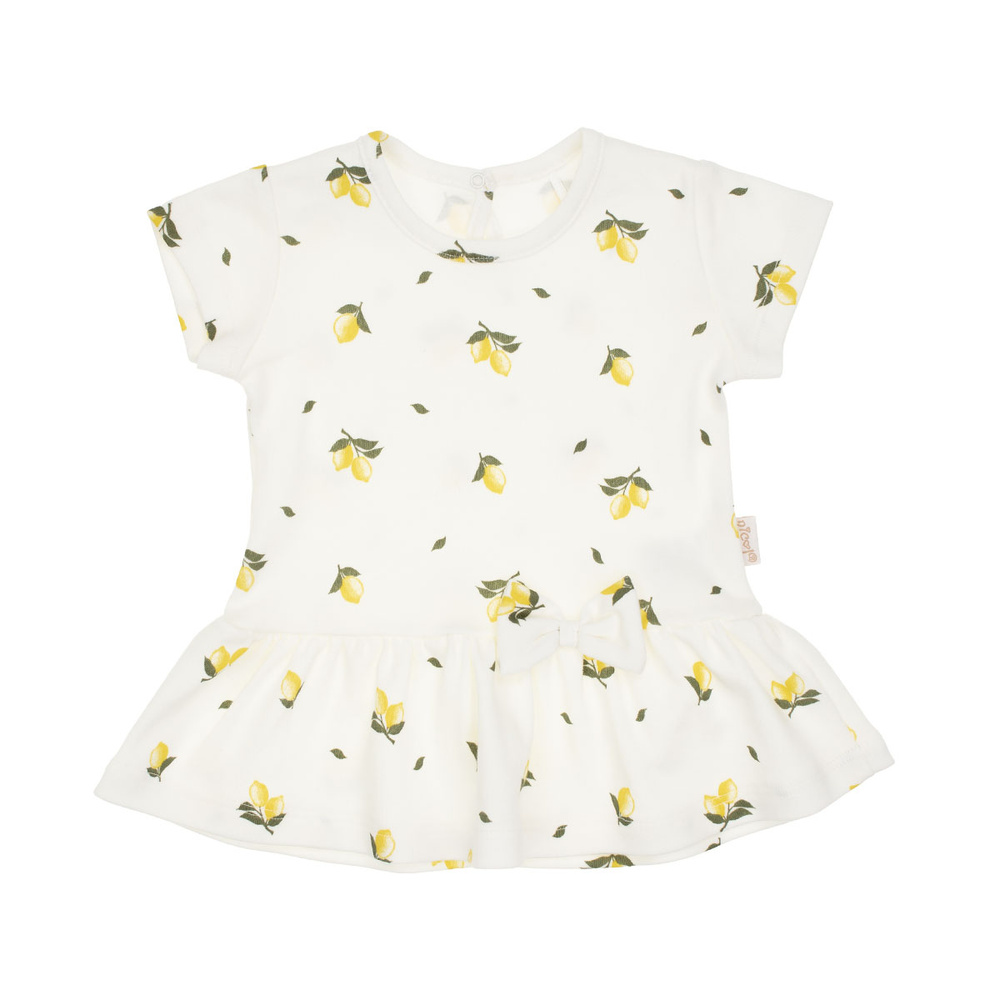 Stelle eine FrageKurzarmbluse für Mädchen. Perfekt für Frühling und Sommer. Der Druck wurde mit einer sicheren wasserbasierten Farbmethode hergestellt. Das Modell ist unten mit einer Rüsche und vorne mit einer Schleife verziert. Auf der Rückseite befindet sich ein Tropfenverschluss mit nickelfreiem Druckknopf.