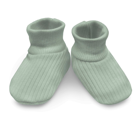 Leichte Babyschuhe mit breiter Manschette, die bei Bedarf hochgekrempelt werden kann.