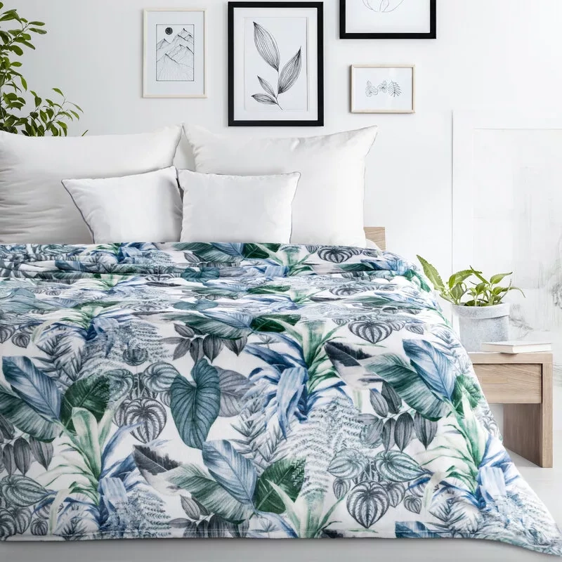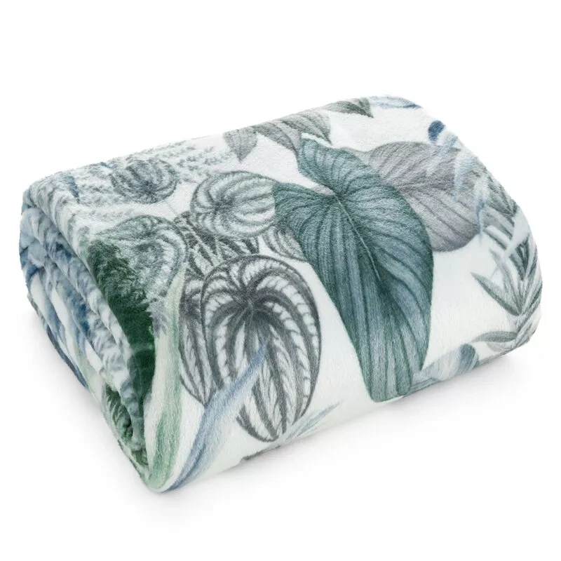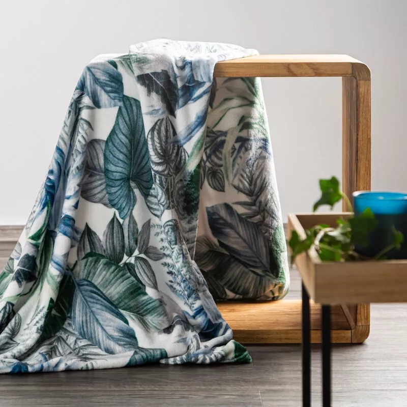Eine elegante und äußerst weiche Ergänzung für den Innenraum, die sowohl als Decke als auch als dekorativer Bezug für ein Bett oder Sofa verwendet werden kann. Aus hochwertigem Polyester gefertigt, zeichnet es sich durch einen zarten Blättermotivdruck und eine angenehm anzufassende Struktur aus. Die Kombination aus Weiß und Olivgrün verleiht ihm einen stilvollen Look und passt perfekt zu modernen und klassischen Arrangements.