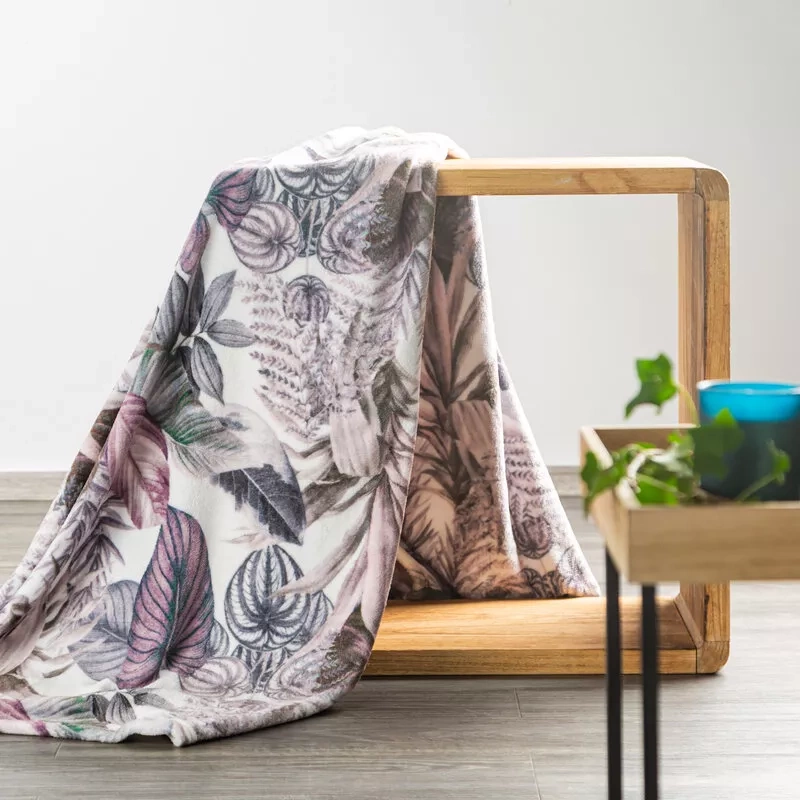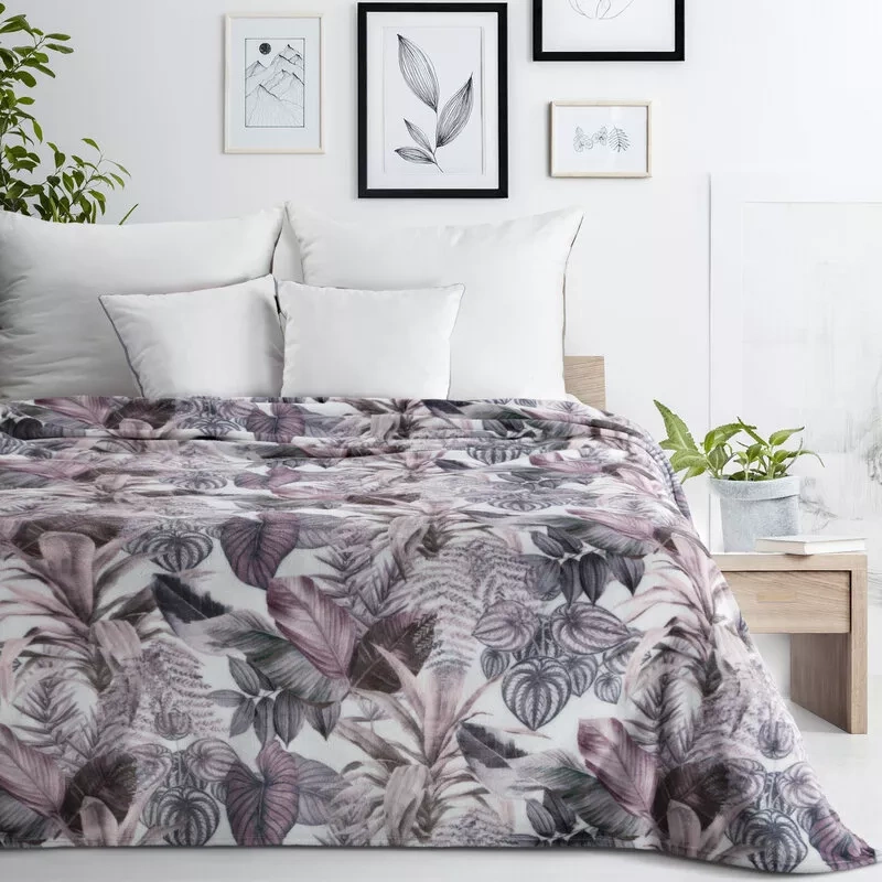 Davos 2 Decke Tagesdecke Blätter Eurofirany lila grau