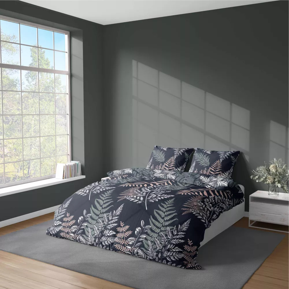 5036 Eine Detexpol-Mikrofaserbettwäsche mit Farnblättern, Marineblau