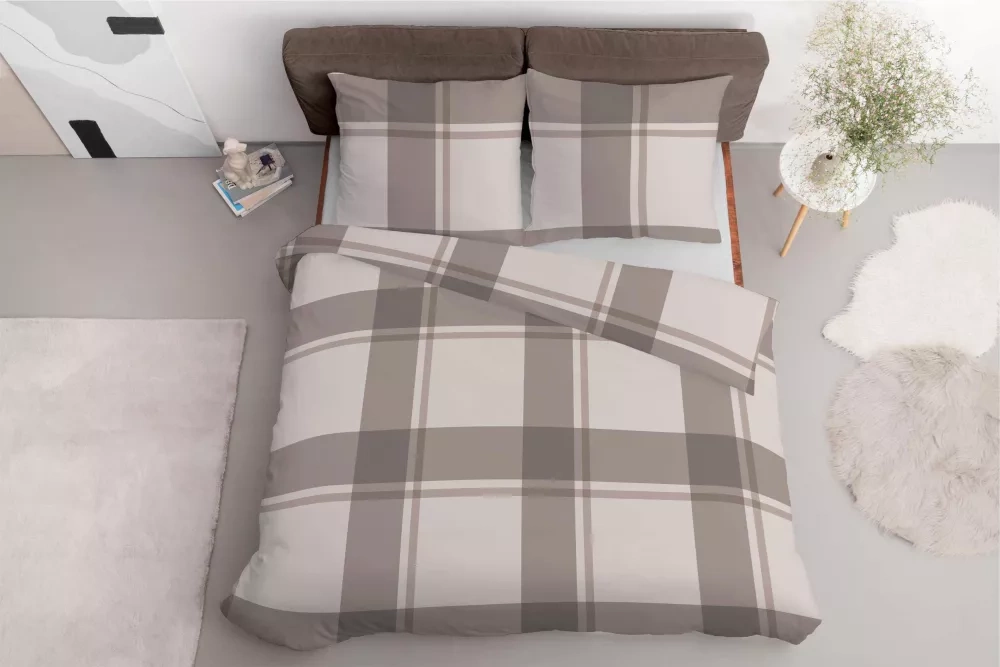 5218 B Detexpol-Bettwäsche aus beigem Satin mit Karomuster