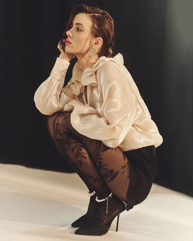 Geblümte Strumpfhose 20 den Gabriella - nero