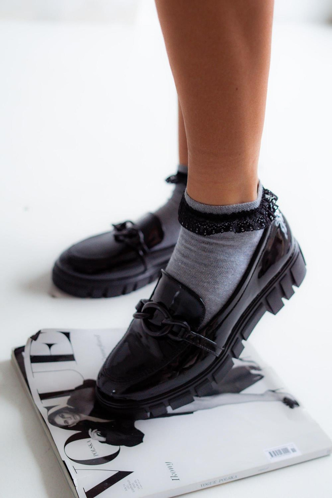 0897 Milena Damensocken mit Spitze – helle Melange 1 – schwarze Spitze