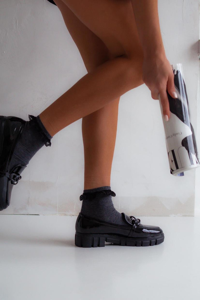 0897 Milena Damensocken mit Spitze – dunkle Melange