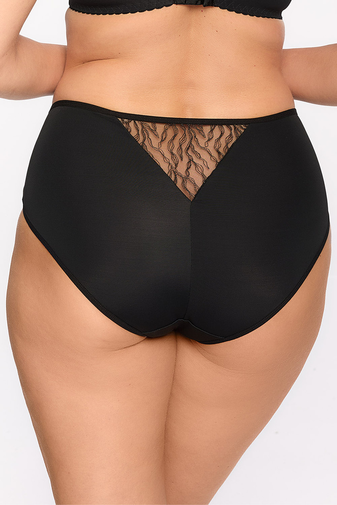 Damen-Slip mit klassischem Full-Cut-Schnitt. Sie verwenden stabilen, bestickten Stoff, der eine dezente Dekoration verleiht, sowie elastischen Tüll, der für perfekte Passform und Komfort sorgt.