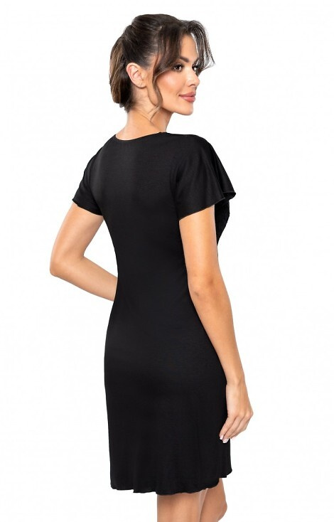 Ein Damennachthemd ist eine elegante und bequeme Wahl für jede Nacht. Hergestellt aus hochwertiger Viskose sorgt es für ein angenehmes Hautgefühl und Tragekomfort. Der Ausschnitt ist mit Spitze mit Blumenmotiv verziert, was dem Hemd einen subtilen, romantischen Charakter verleiht. Der Gummizug unter der Brust mit zarter Raffung betont die Figur und die Länge oberhalb des Knies macht das Shirt nicht nur bequem, sondern auch stylisch.