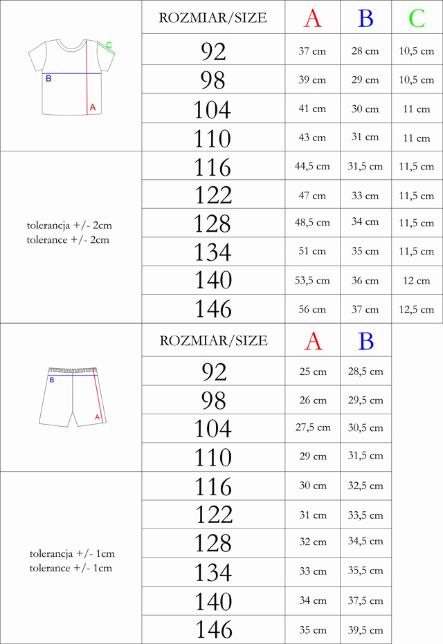 - Pyjama für ein Kind Kurzarmbluse, Kurze Shorts Polnischer Hersteller