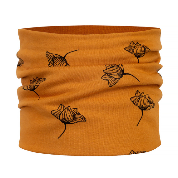 Der dünne Schal besteht aus dünnem und elastischem senffarbenem Strick, verziert mit einem mädchenhaften Orchideen-Print. Das flexible Material erleichtert das Anziehen des Schals. Perfekt für Herbst- und Frühlingsspaziergänge und Radtouren, schützt den Hals Ihres Kindes vor Kälte und Wind. Es wird in Polen hergestellt.