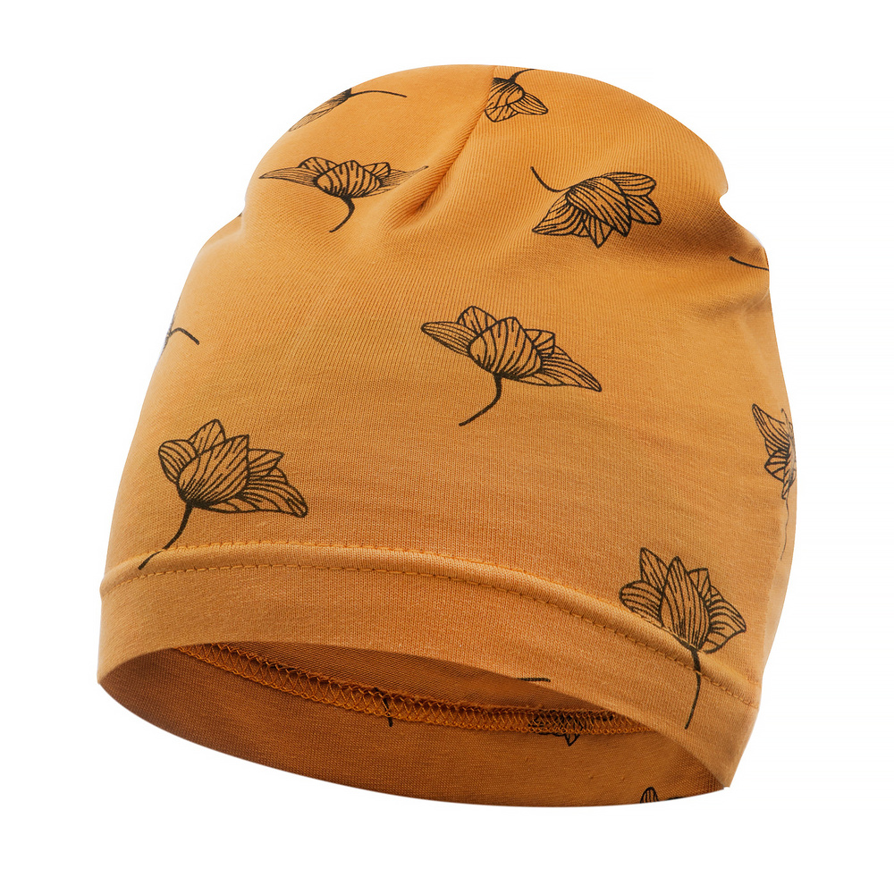 Eine Kindermütze mit locker fallendem Oberteil ist ein Modell, das nie aus der Mode kommt. Aus weichem senffarbenem Stoff, verziert mit einem mädchenhaften Orchideen-Print. Durch den Zusatz von Elasthan passt sich der Kopf des Kindes perfekt an, ohne ihn einzuengen. Wie alle Kleidungsstücke von Pinocchio wird auch der Hut in Polen hergestellt. Es lohnt sich, daran zu denken, wenn Sie die Herbst- und Frühlingsgarderobe für Ihre Tochter vervollständigen.