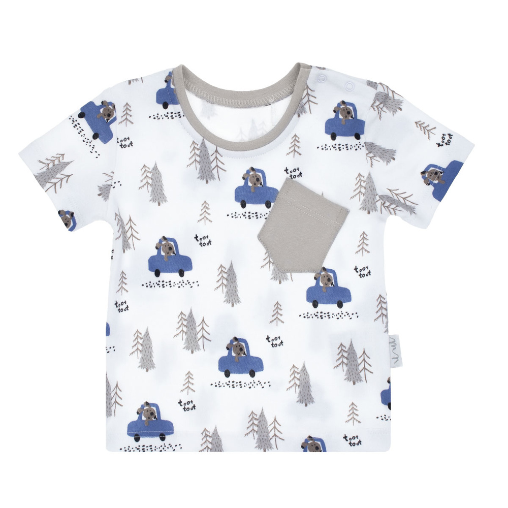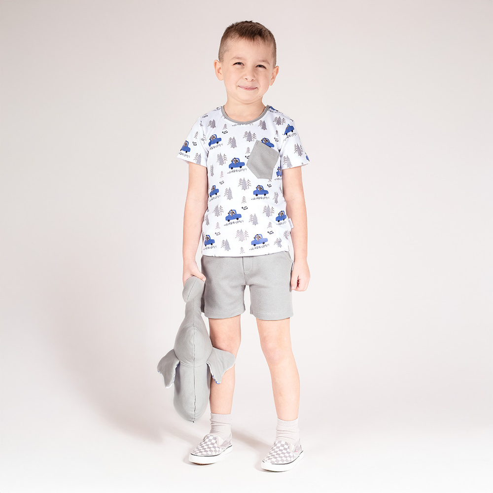Stelle eine FrageModische Kurzarmbluse für einen Jungen. Das Modell besteht aus Baumwolle, hergestellt aus bedrucktem Material. Das Material verfügt über das Öko-Tex Standard 100 Trustworthy Textiles Zertifikat.
