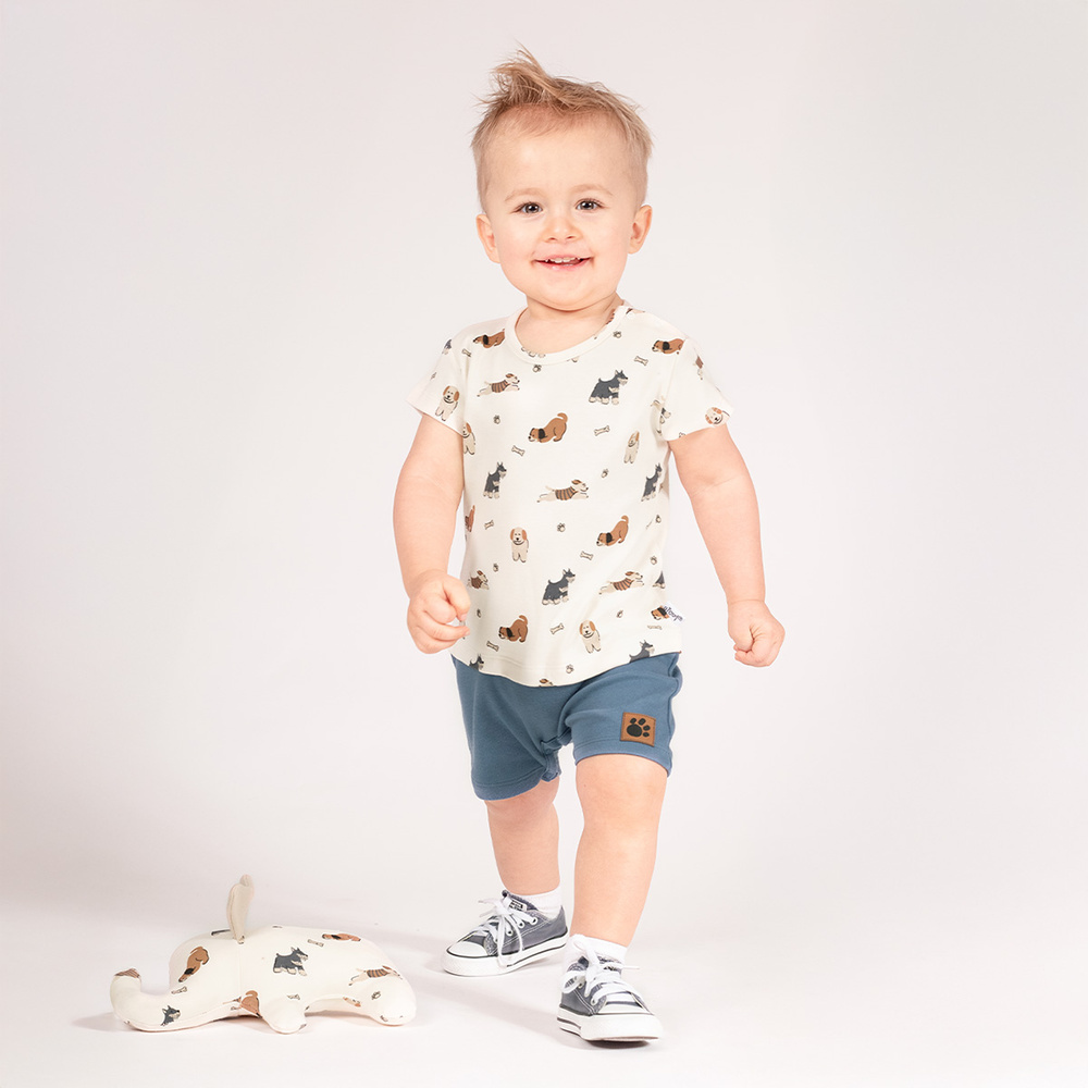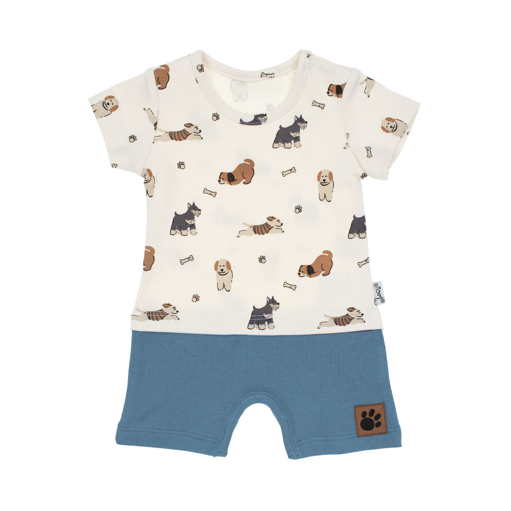 Perfekt für warme Tage, ein Jungen-Strampler. Die Oberseite des Produkts besteht aus bedruckter Baumwolle und die Unterseite des Rampers ist einheitlich. Wird mit bequemen, nickelfreien Druckknöpfen an der Schulter und im Schritt befestigt, was das Windelwechseln des Babys erleichtert. Hergestellt aus 100 % Baumwolle, zertifiziert nach Öko-Tex Standard 100. Vertrauenswürdige Textilien.