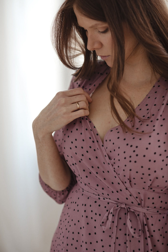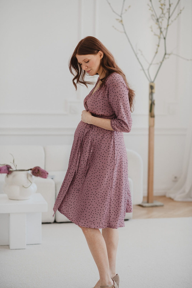 Umstands- und Stillkleid Milk Shake, 3/4-Ärmel Milk&Love, Flieder mit Punkten