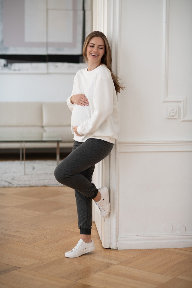 Das perfekte Umstands-Sweatshirt – sein lockerer, übergroßer Schnitt wurde entwickelt, um sich Ihrem sich verändernden Körper anzupassen. Ganz gleich, ob Sie sich im ersten, zweiten oder dritten Trimester befinden, das Sweatshirt engt nicht ein und bietet Ihnen maximalen Komfort. Es sieht sowohl zu Umstandsleggings als auch zu Hosen mit hohem Bund großartig aus. Nach der Geburt dient es als bequemes Sweatshirt zum Stillen und für den Alltag. Atmungsaktive Strickwaren von höchster Qualität, die die strengen Öko-Tex Standard 100-Tests bestanden haben – dank ihnen sind Umstands- und Still-Sweatshirts für Mutter und Baby weich und angenehm anzufassen.