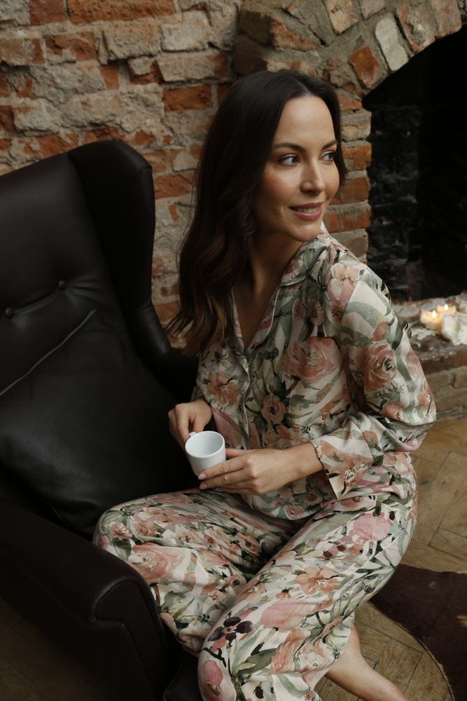 Eine ideale Wahl für Frauen, die Wert auf Komfort legen und sich gleichzeitig außergewöhnlich stilvoll fühlen möchten. Ein langärmliges Hemd mit Knöpfen, das auf Komfort und Bewegungsfreiheit ausgelegt ist. Lange Hosen runden das Set ab und sorgen für maximalen Komfort beim Schlafen. Sein weicher und luftiger Stoff liegt angenehm auf der Haut und der lockere Schnitt garantiert Bewegungsfreiheit. Das natürliche Material macht den Pyjama hautsympathisch, sorgt das ganze Jahr über für ausreichende Luftzirkulation und thermischen Komfort. Perfekt zum Schlafen, aber auch ideal für entspannte Tage zu Hause.