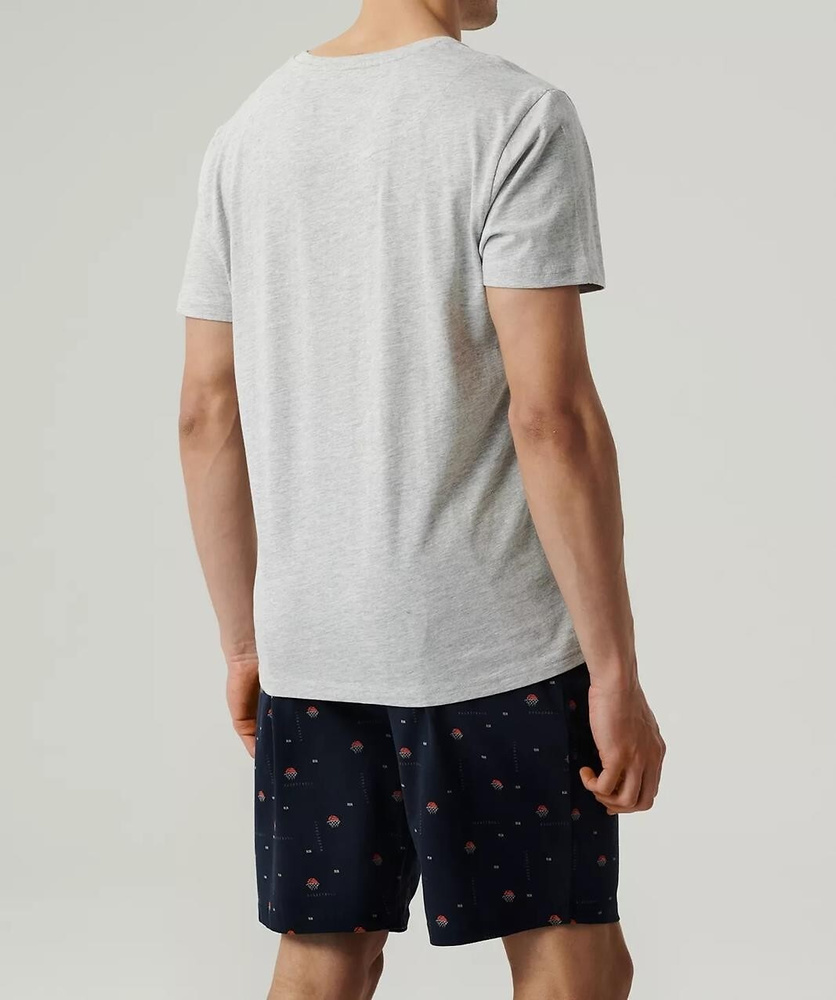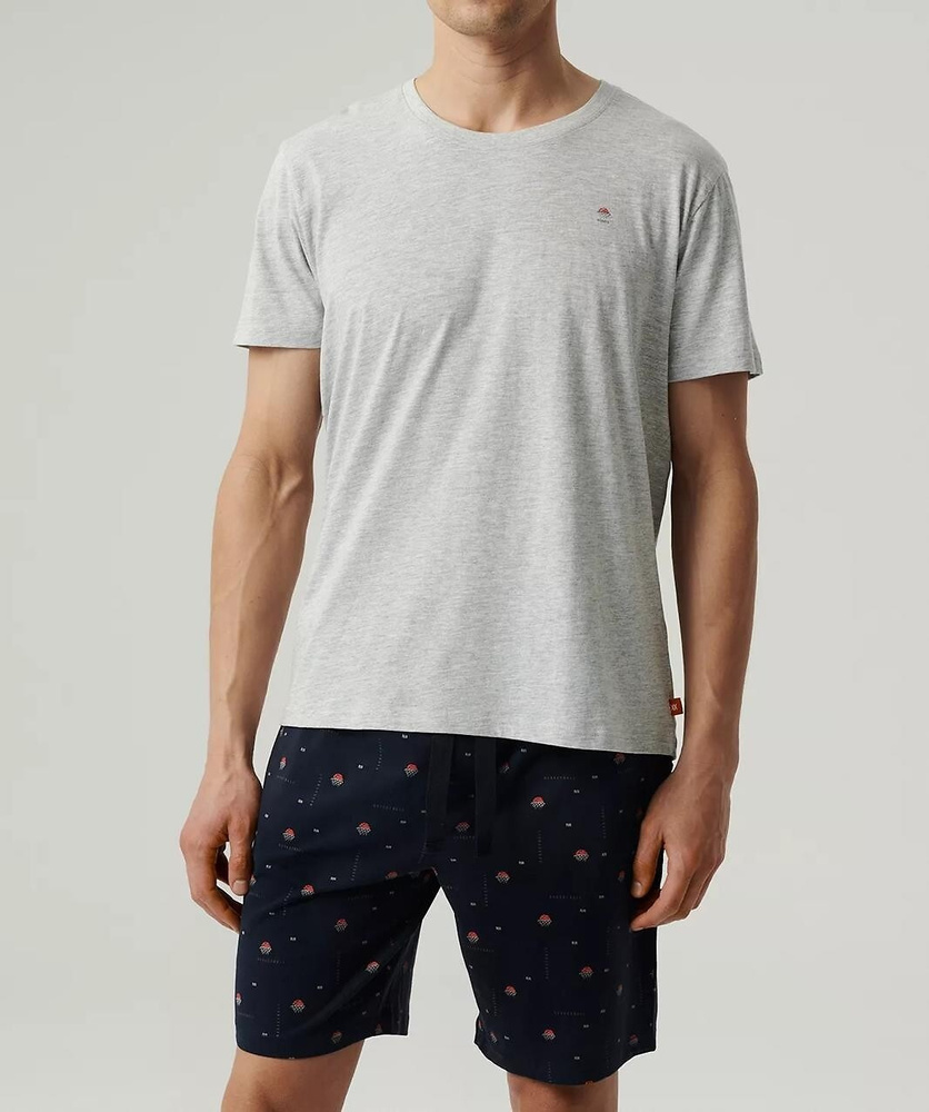 NMP-384 Herren-Kurzarmpyjama, Atlantikgrau, Marineblau