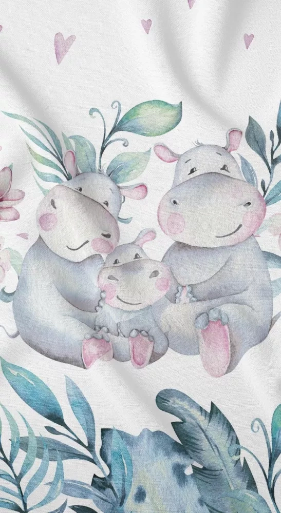 3292 B Land of Dreams Kinderbettwäsche aus Baumwolle, Karo-Flusspferde