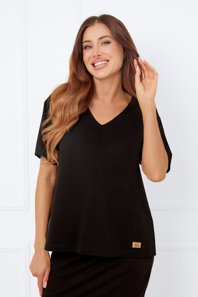 Caro Kurzarmbluse Italian Fashion - schwarz