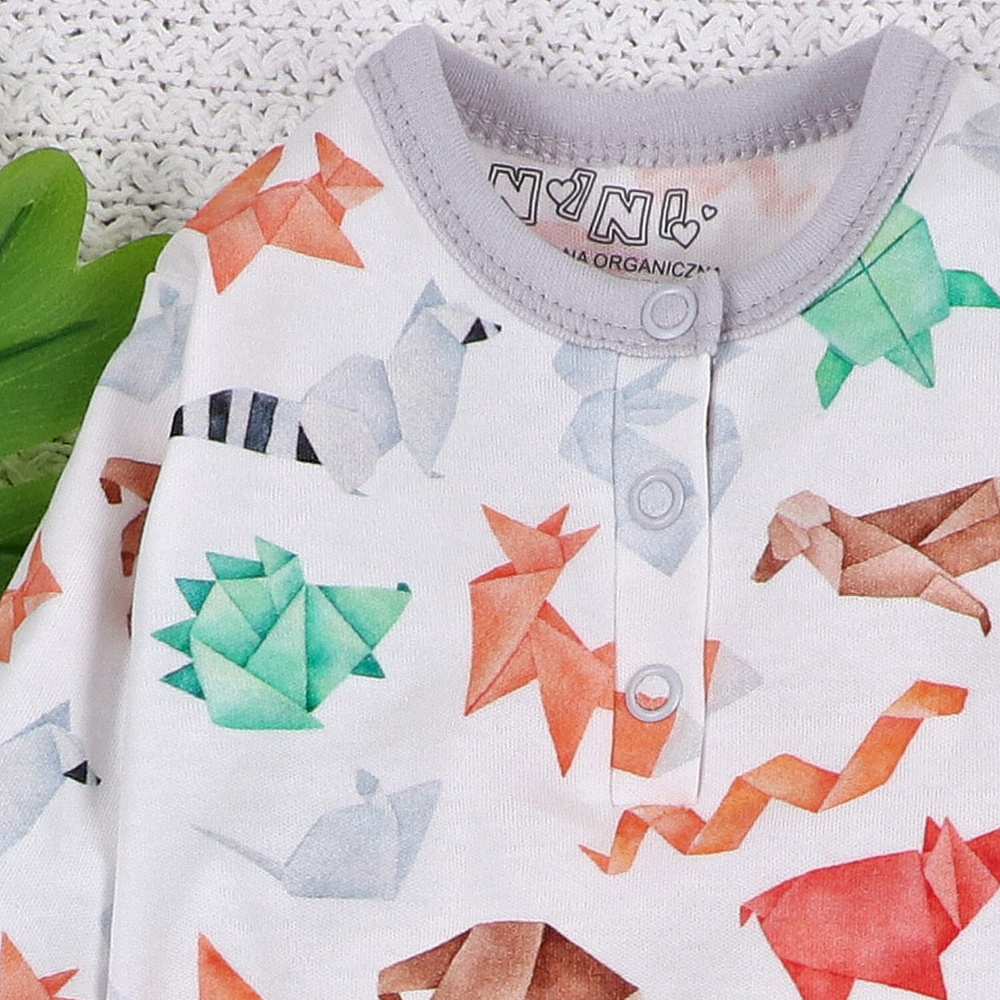 Ein in Polen hergestellter Babystrampler aus sehr angenehm anzufassender Bio-Baumwolle. Öko-Baumwollfasern sind stärker, elastischer und dehnungsbeständiger, sodass sie länger halten. Nickelfreie Druckknöpfe und zarte, weiche Paspeln sind weitere Vorteile des Kleidungsstücks. Die Marke NINI ist eine der wenigen in Polen, die über das internationale Zertifikat OEKO-TEX STANDARD 100 verfügt, das bestätigt, dass ihre Produkte den höchsten Sicherheitsstandards für Babys entsprechen. Durch den Kauf von NINI-Kleidung kümmern Sie sich um die Umwelt sowie die Sicherheit und Gesundheit Ihrer Kinder.