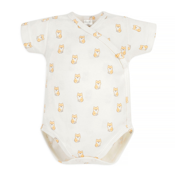 Der Baby-Body, gebunden, mit kurzen Ärmeln, aus der Lovely Day-Kollektion besteht aus 100 % zarter Baumwolle. Der Umschlagausschnitt mit sicheren, nickelfreien Druckknöpfen macht das Anziehen und Wickeln Ihres Babys ganz einfach. Das Outfit wird mit Schlafanzügen und einer Mütze aus der gleichen Kollektion großartig aussehen. Ein Babybody ist ein wesentlicher Bestandteil der Babyausstattung eines Neugeborenen. Es wird in Polen hergestellt.