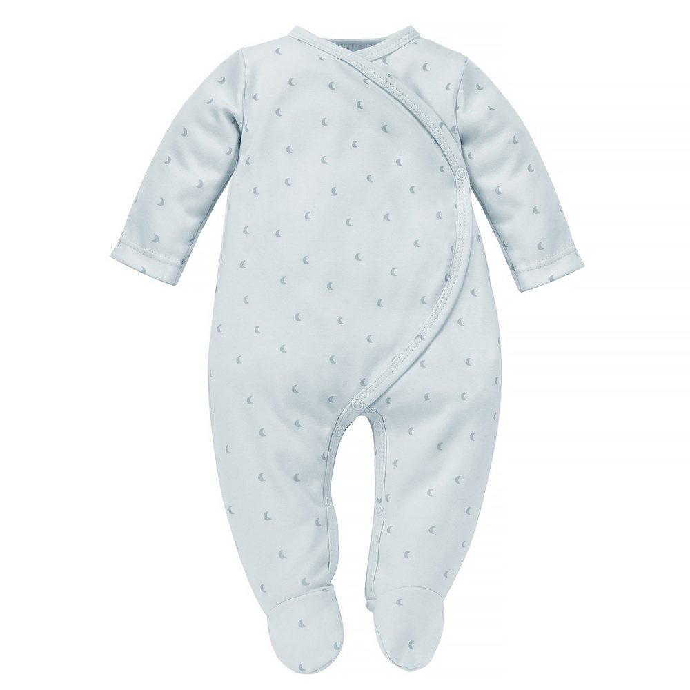 Der gebundene Strampler besteht aus zartem 100 % Baumwollstoff. Der Kuvert-Schnitt, vollständig mit sicheren, nickelfreien Druckknöpfen befestigt, macht das Anziehen und Wickeln Ihres Babys ganz einfach. Durch den im Schritt eingenähten Schritt passt die Kleidung gut zu einem Kind, das eine Windel trägt. Ein Strampler ist ein wesentlicher Bestandteil der Babyausstattung eines Neugeborenen. Es wird in Polen hergestellt.